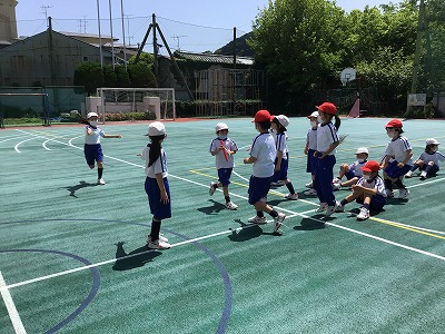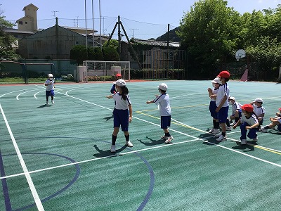最後にリレーをしました。日差しが強く大変暑い運動場でしたが、大歓声で盛り上がりました。