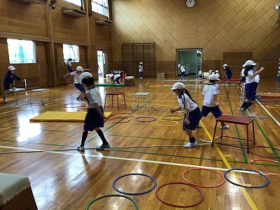 その後、自分たちのチームが作ったものや他のチームが作ったものに何度も挑戦し、みんなで楽しんで運動できました。