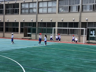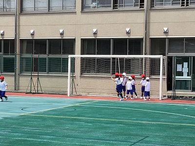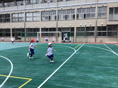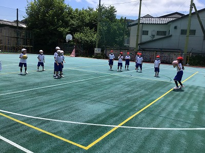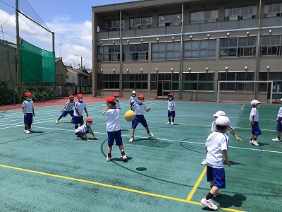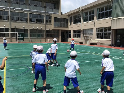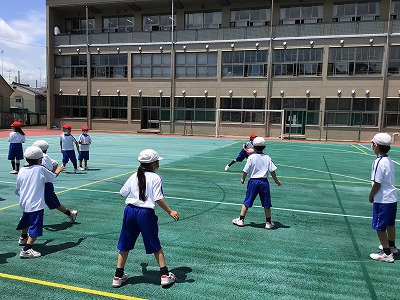 今日は、朝からの雨がすっかり上がり、運動場で体育ができました。