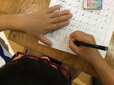 みんな、黙々と記号のような音符練習に向かってくれたので、欲張って“休符”のことまで知らせたくなりました。
