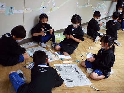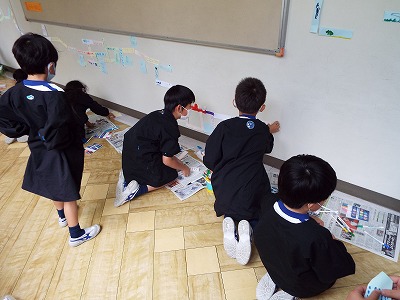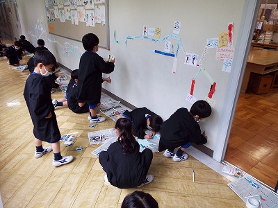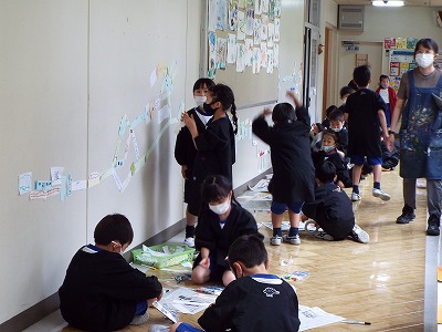 図工の時間。「ジャリおじさん さんぽみち」の学習風景です。