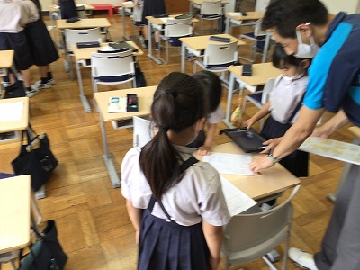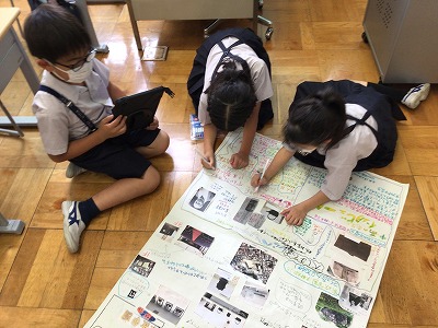 生活科の時間は、かべ新聞を発表するための準備をしています。
