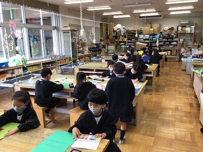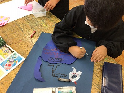 今日の図工では、不思議な形、不思議な色、ふしぎなたまごをつくりました。