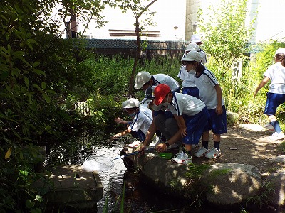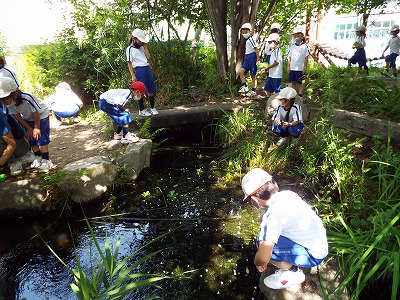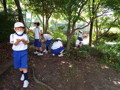 ビオトープに入ると、みんな生き生きと虫を探していました。