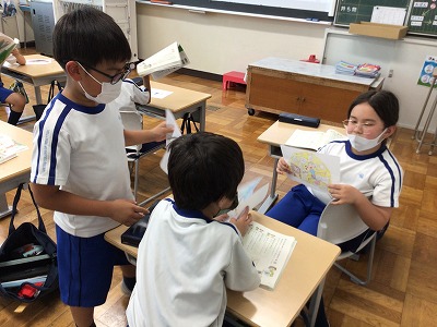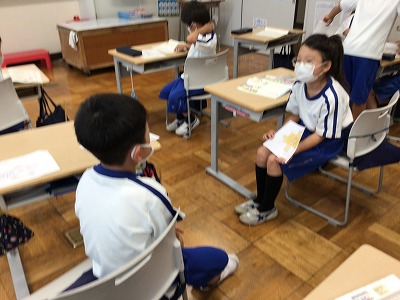 楽しい時間は続きます。今の時期にあった楽しいゲーム紹介です。今回はやっていませんが、みんなで想像力を働かせて、ゲームをする2年生を思い描きながら、実用的な英文を学びました。「蚊にかまれた~!」です。家でも言えるかな? "I got a mosquito bite!"