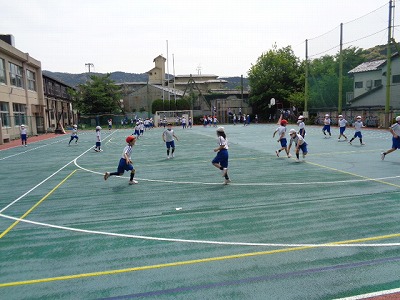 休み時間は、鬼ごっこを楽しむ3年生の姿が見られました。