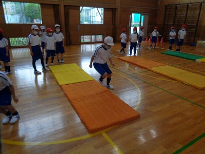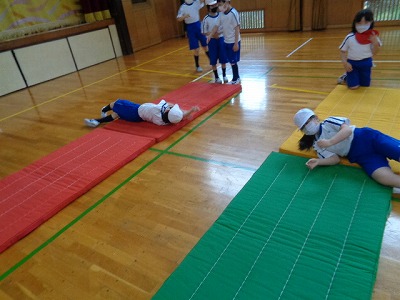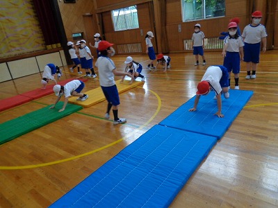 一校時の体育は、今日からマット運動です。