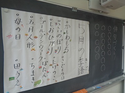 今日の国語は、5月をテーマに、俳句作りに取り組みました。