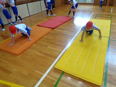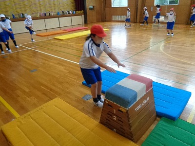 跳び箱、ケンパ、縄跳び、バスケ、マットなど様々な運動に取り組みました。
