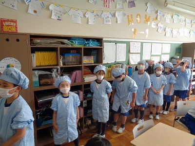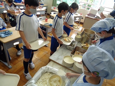 配膳では、丁寧に盛り付けて素早く活動できるようになってきました。