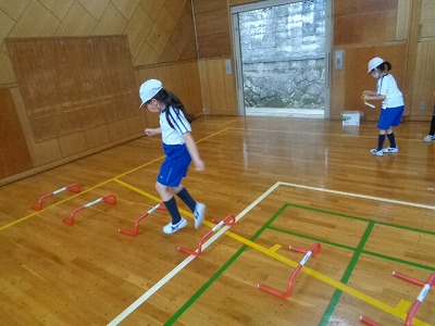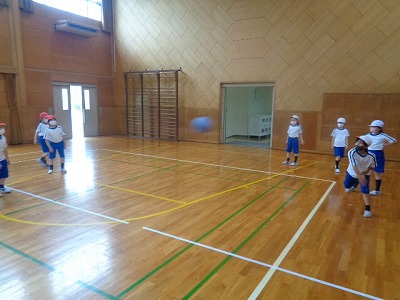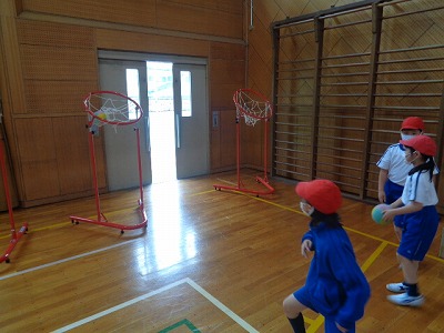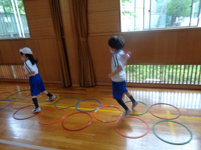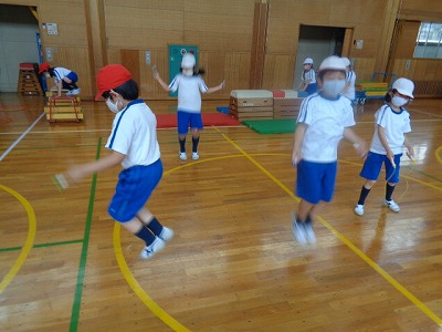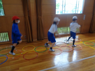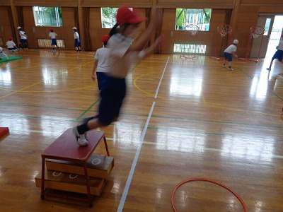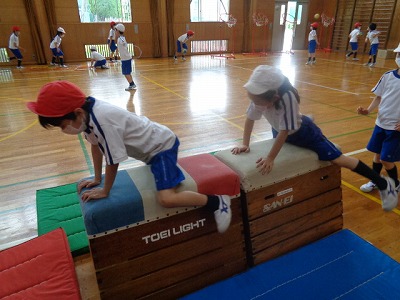 跳び箱、マット、ケンパ、バスケットボール、縄跳び、など・・・