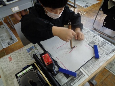筆を使って書く活動でも、良い姿勢で筆を立てて書こうと練習しました。