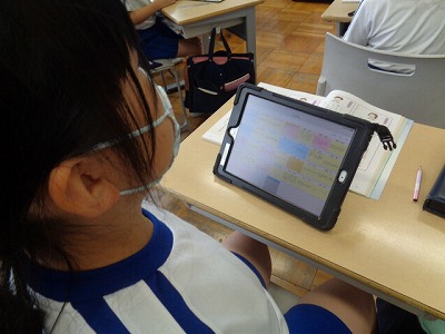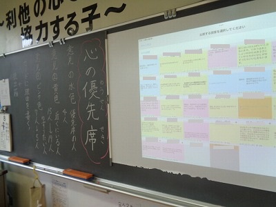 それぞれの意見を色分けして提出することで、自分以外の友達の考えや意見がすぐに判断でき、じっくりと考えることができました。