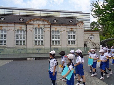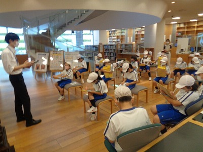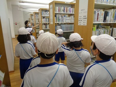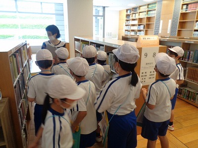 校区探検のおさらいと学校の周りの公共施設を知る活動のまとめとして、京都府立図書館へ見学に行きました。