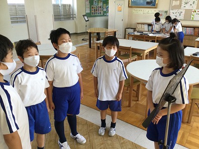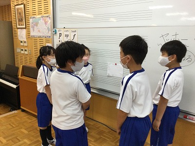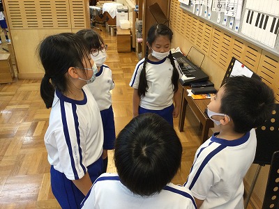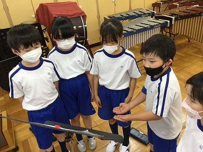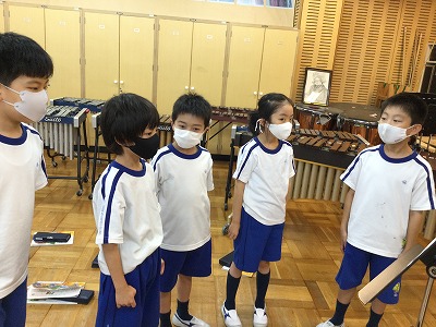 相談から練習へと時間が過ぎていくと、指揮者のように合図をおくる友達が現れたり、お互いの目線で発するタイミングを合わせたりと、3年キッズの”音楽的センス”が見え始めました。