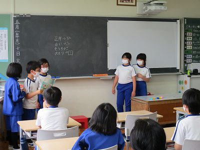 昼根っこタイムの学習中でしたが、静かに放送を聞き、「おはしもて」を守りながら落ち着いて真剣に行動することができました。