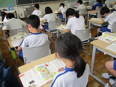 1校時の国語は、詩を音読した後、その詩からイメージしたことを絵に表しました。