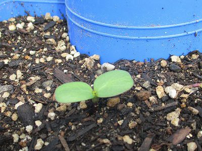 体育の前に、先週種まきをした「ミニひまわり」を見に行きました。