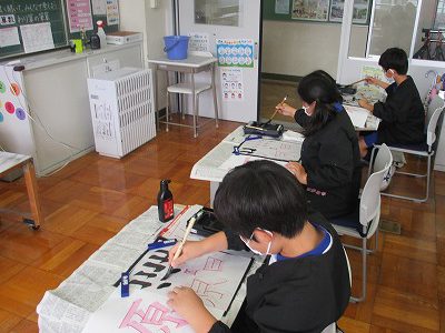 「がんだれ」の大きさや、8画目のはね、10画目の点をポイントにして練習しています。