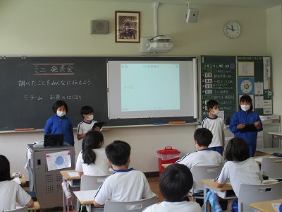 クイズの出し方や劇を用いた説明、写真を入れたスライドなど、それぞれのチームで工夫して発表することができました。
