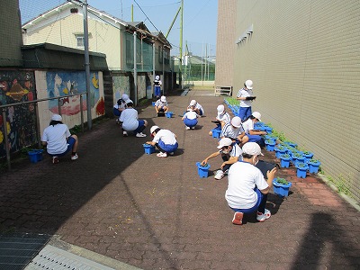 ミニひまわりの観察をした後は、雑草も抜きました。