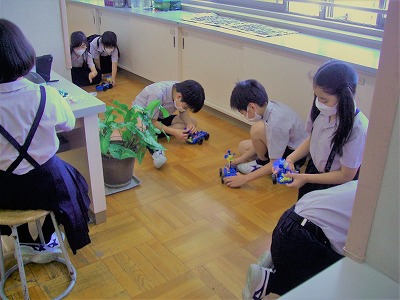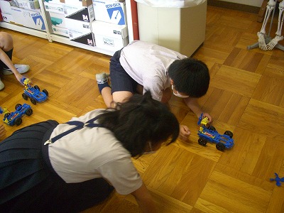 思い通りに電池をつないで、プロペラカーを動かせた人もいれば、時間内に間に合わなかった人もいます。