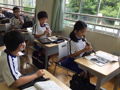 教室の座席のたて列ごとに進めます。まず、一人ずつ“音型”を演奏して紹介します。