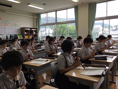 「♪茶つみ」で響かせる低い「レ・ミ」、「♪ハローサミング」に登場する「ミ」のサミングは、これからのリコーダー学習の基本です。曲との出会いで、リコーダーが得意になった!という先輩達がたくさんいます。みなさんも、その仲間にぜひ加わってほしいです。