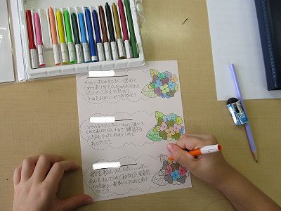 友達のがんばりや、助け合って活動できたことへの「ありがとうメッセージ」などを丁寧に仕上げて、交換しました。