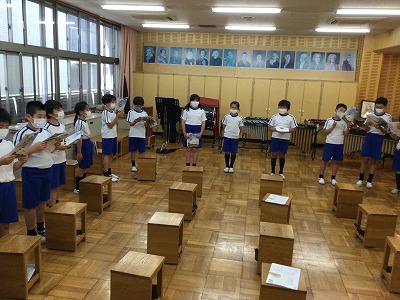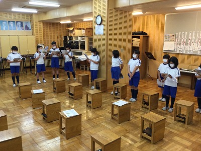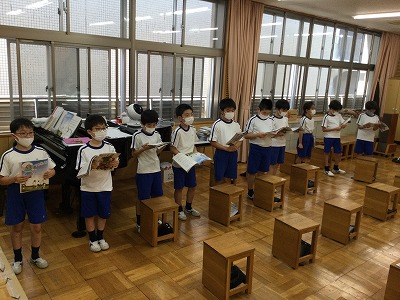 場面毎の題名を考えた「♪まきばの朝」の学習を思い出し、歌唱の練習を行いました。