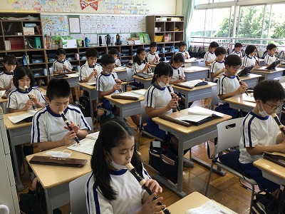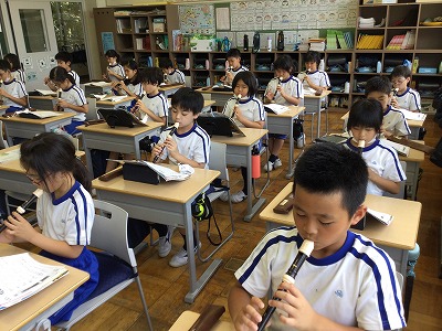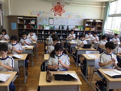 最後は教室に戻って、「♪もののけ姫」の二重奏を演奏しました。