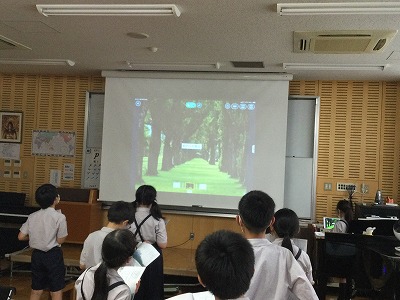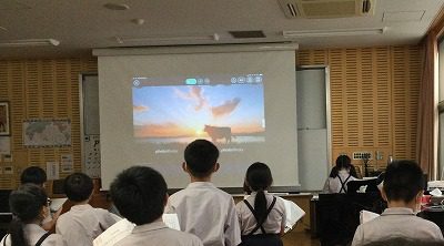 友達が選んだ画像集を、日直さんに2小節毎に切り替えてもらいながら、「♪まきばの朝」を歌いました。