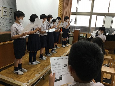 時間を残して、来週に出かける「琵琶湖自然教室」に向けた“集い(主にキャンプファイアー)”の歌を紹介しました。