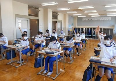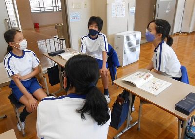 うまく結末につなげられた班も、うまくいかなかったという班もありましたが、最後は全員でお話作りをしてみました。お話の流れや結末を意識しながら、全員で上手に一つのお話を完成させる事ができました。
