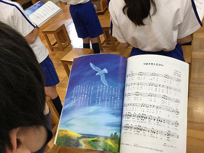 6年生音楽の出会いの曲は「♪翼をください」です。昭和の名曲に挙げられる歌ですね。しかも、いろんな方が歌っておられる音源を耳にします。