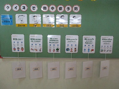 今月の保健室前の掲示は「熱中症クイズ」です。みなさん、もう見てくれましたか?