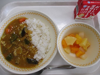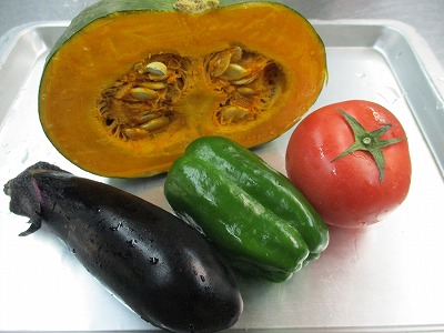 ☆ かぼちゃ、なす、トマト、ピーマンの夏野菜が入ったカレーでした。