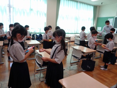 久しぶりに自分の教室に入った子ども達。2学期に一歩を踏み入れ、どんな思いやめあてを持ったことでしょう?