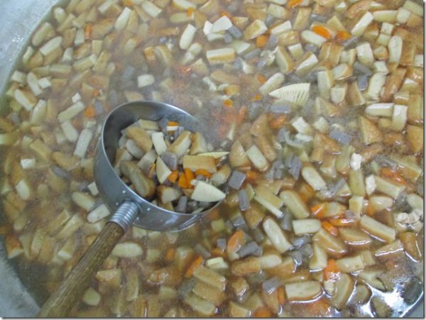 ☆平天とこんにゃくの煮物は、出汁をよく染み込ませた煮物になりました。筍や鶏肉も入っています。出汁はかつおと昆布を使ってとりました。しょうゆの塩味が効いていました。