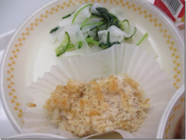 ☆大根、壬生菜、きゅうりのサラダです。レモン風味のドレッシングは酸味が効いていて、今日のような暑い日はさっぱり食べられます。壬生菜はゆでても、シャキシャキとした食感がおいしい野菜です。