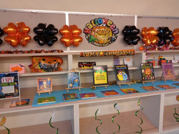 Next week is Halloween. On the second floor at school, there is now an autumn book display with several themed books about Halloween, thanksgiving, and autumn activities.