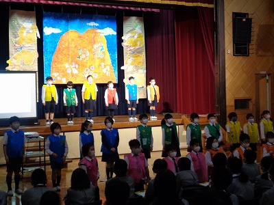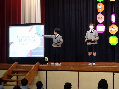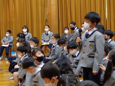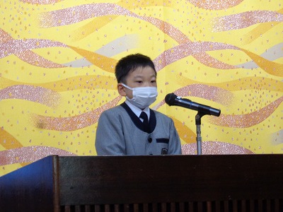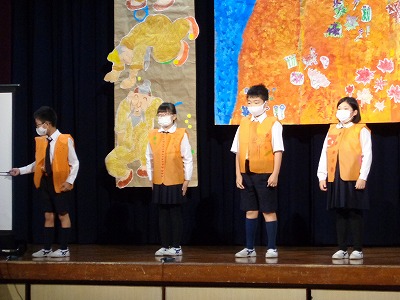 はじめに、児童会本部5名による「約束の言葉」です。