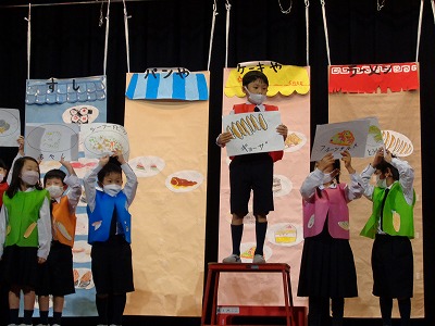 【舞台発表[1年生]『たべものやさんの しりとり大かい』】