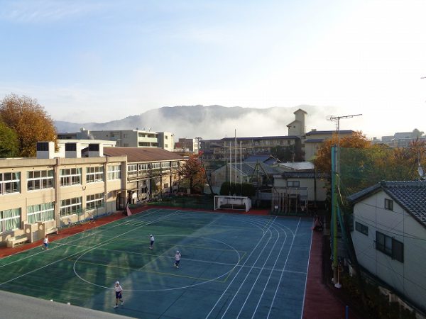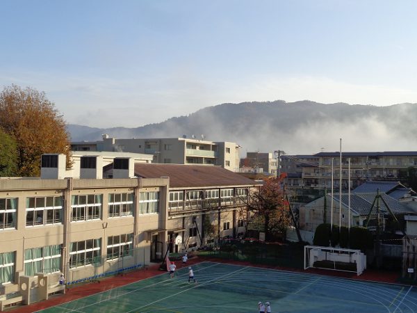 This morning the clouds were hanging very low in the valley around Bunkyo Elementary.