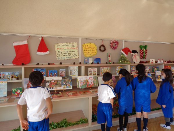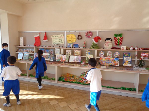 In the gallery there are many Christmas books on display that the students can look at and practice their English reading skills.