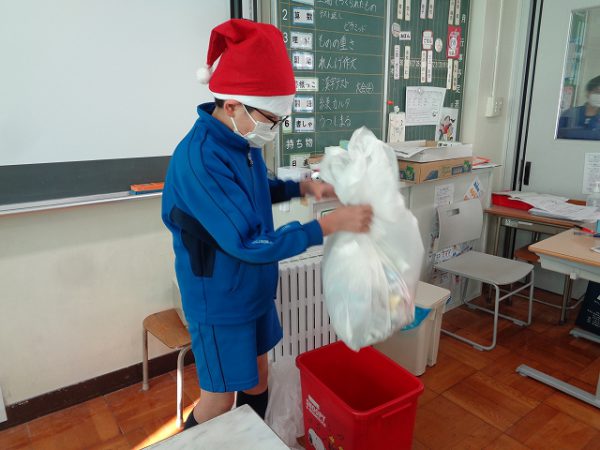 各教室のごみを集めています。名前は「サンタクリーン」!