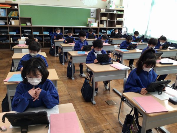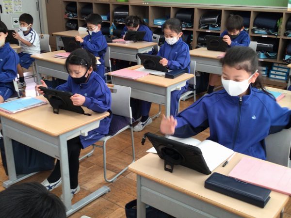The student had a chance to listen to the story several times, and then record themselves reading it aloud on Loilo Note in their iPads.