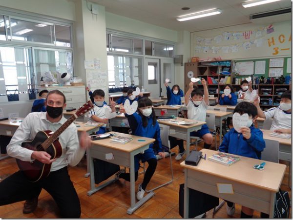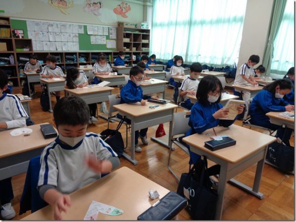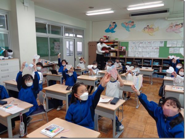 We practiced English phrases and vocabulary for giving and for folding and cutting paper.