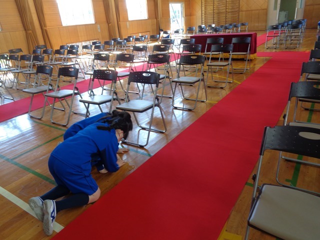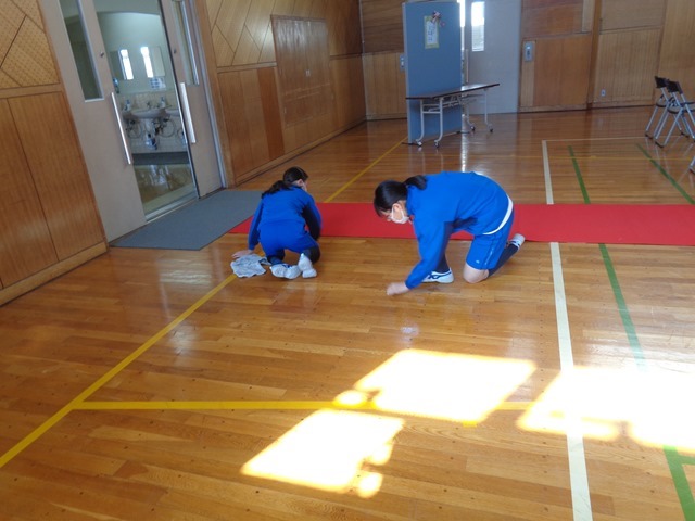 その前の清掃活動では、会場の床を磨く6年生の姿が見られました。