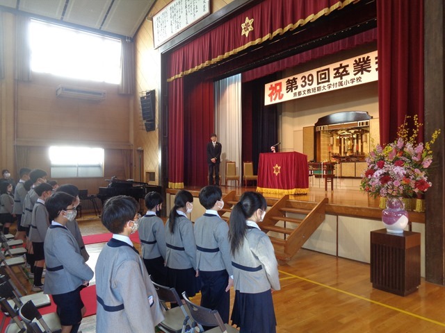 6年生は、明日卒業します。「明るい心」「正しい心」「利他の心」を礎に、挨拶・きまり・協力・努力をキーワードとして、進んで行動実践できる人になってほしいと思います。